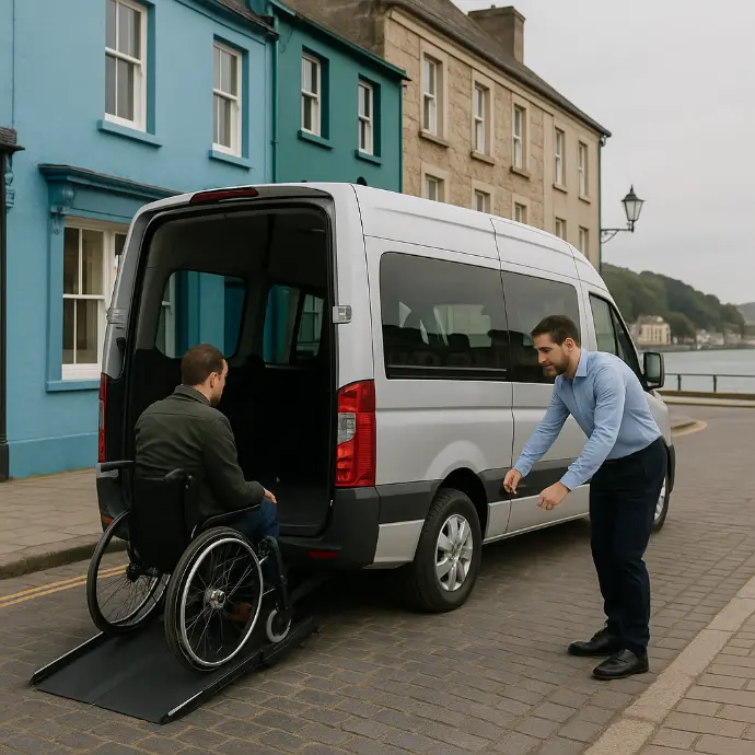 Reliable wheelchair-accessible (WAV) hackney service in Tramore. Safe, comfortable transport with ramp/lift access and trained drivers. Book your ride today.